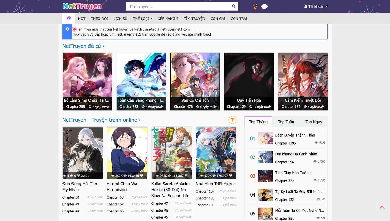 Một nền tảng đọc truyện muốn giữ người dùng lâu phải hiểu được thị hiếu độc giả. NetTruyen làm rất tốt ở điểm này.